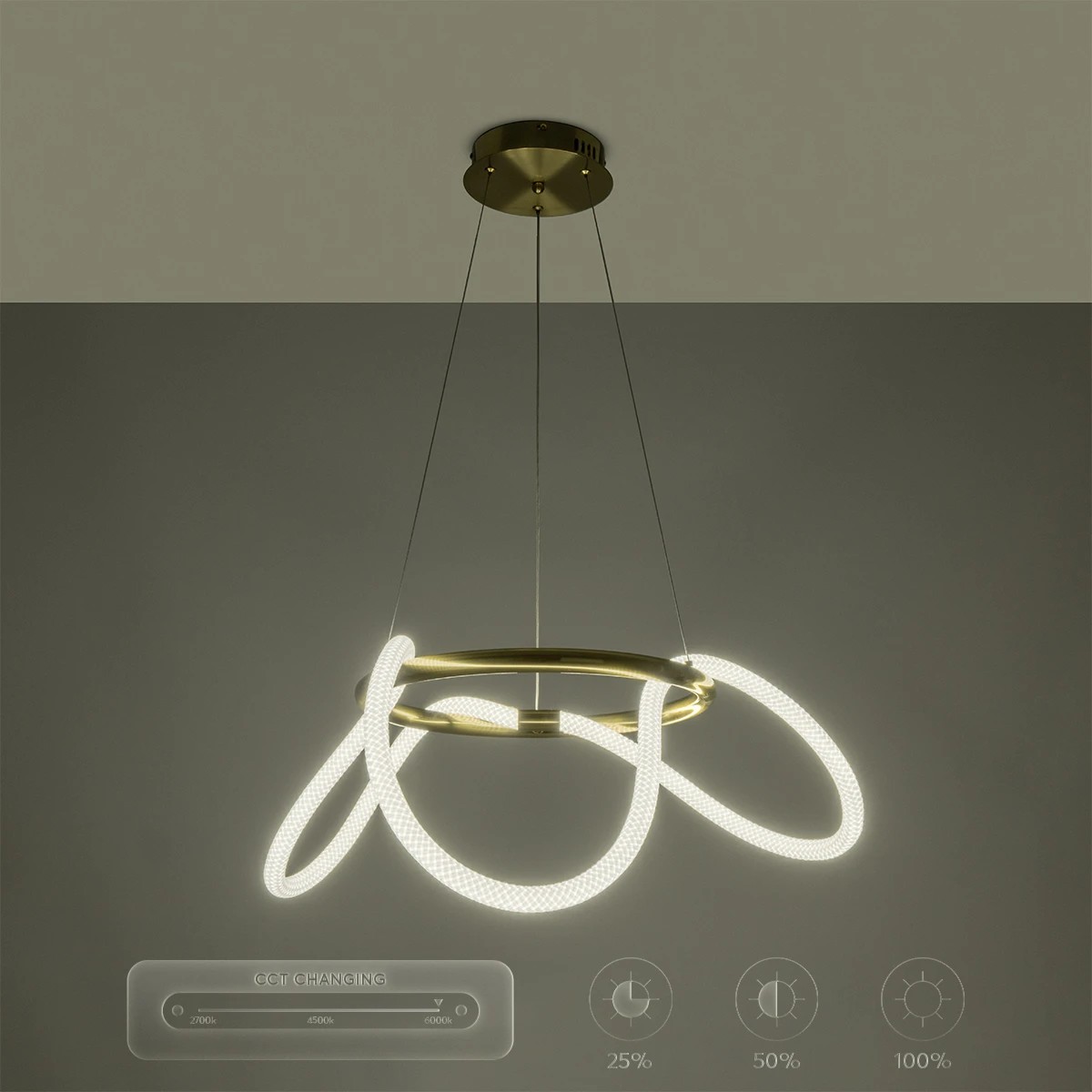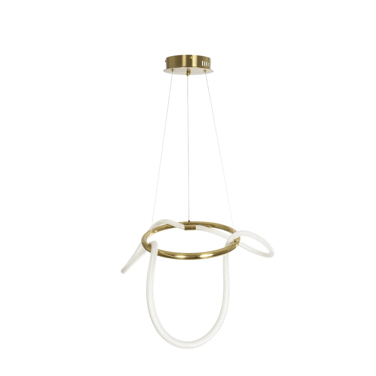 kelvo® GLOW 61658 Μοντέρνο Κρεμαστό Φωτιστικό Οροφής LED 36W 3600lm 360° AC 220-240V IP20 Ρυθμιζόμενο Λευκό CCT με Χειριστήριο από 2700K έως 6000K Dimmable - Lumileds SMD Chip - Χρυσό Πλατίνα & Λευκό Νήμα - Μ70 x Π70 x Υ40cm - 3 Χρόνια Εγγύηση