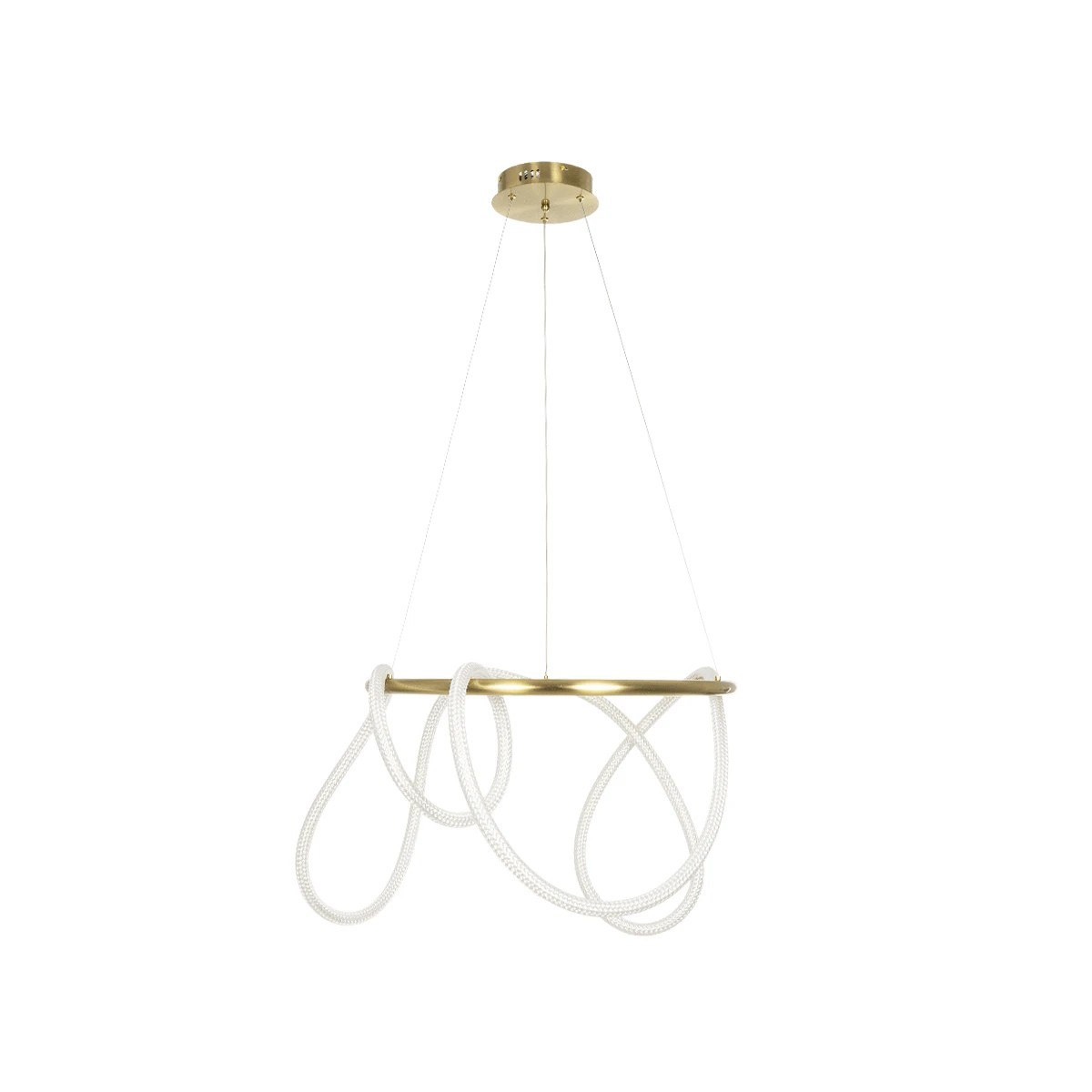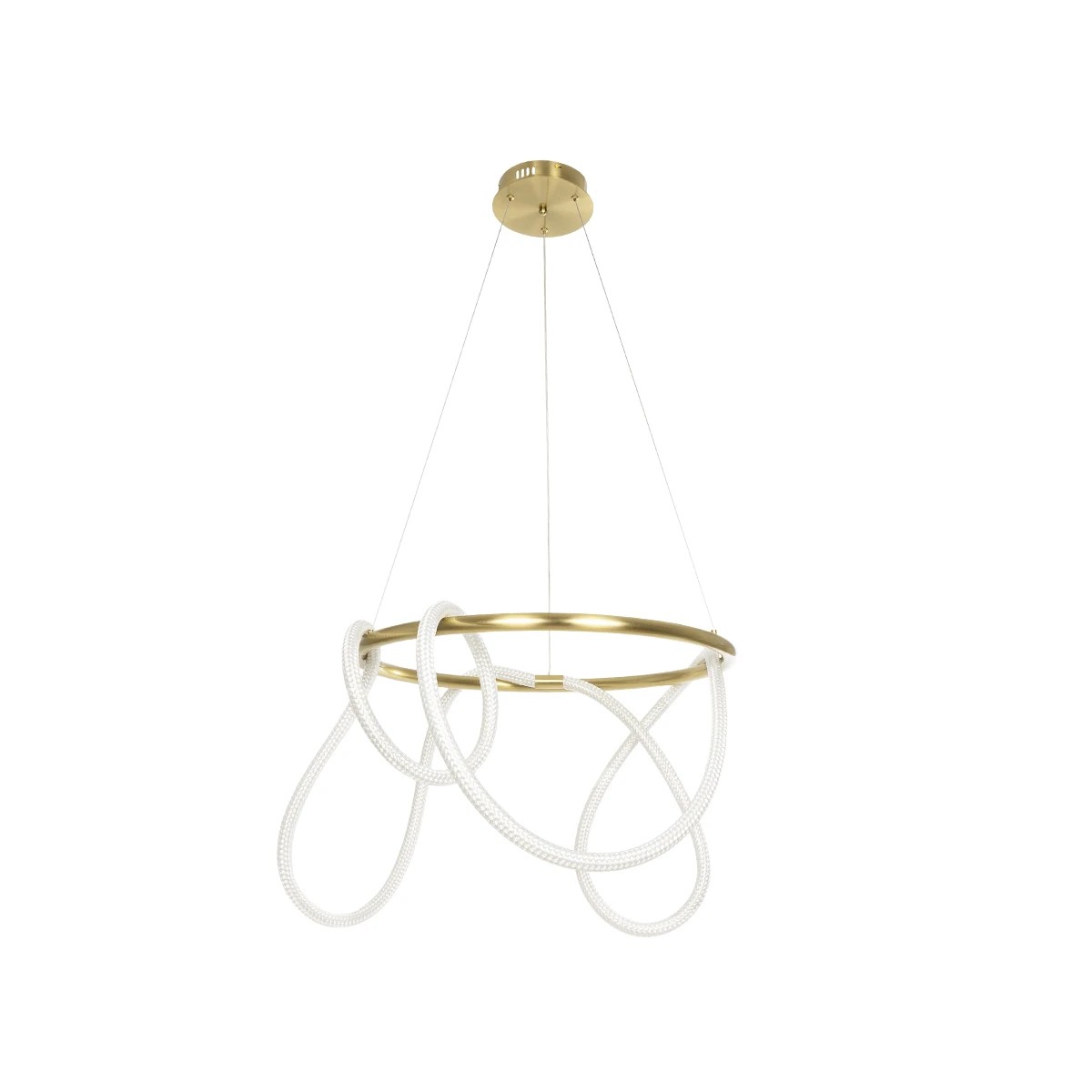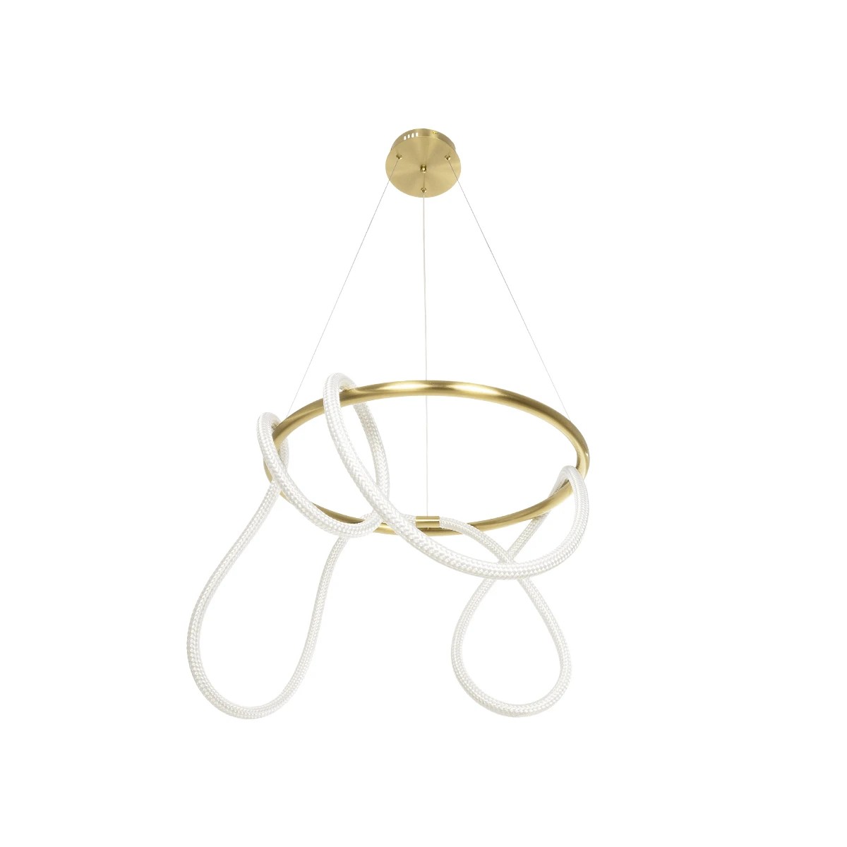 kelvo® GLOW 61659 Μοντέρνο Κρεμαστό Φωτιστικό Οροφής LED 58W 5800lm 360° AC 220-240V IP20 Ρυθμιζόμενο Λευκό CCT με Χειριστήριο από 2700K έως 6000K Dimmable - Lumileds SMD Chip - Χρυσό Πλατίνα & Λευκό Νήμα - Μ80 x Π80 x Υ40cm - 3 Χρόνια Εγγύηση