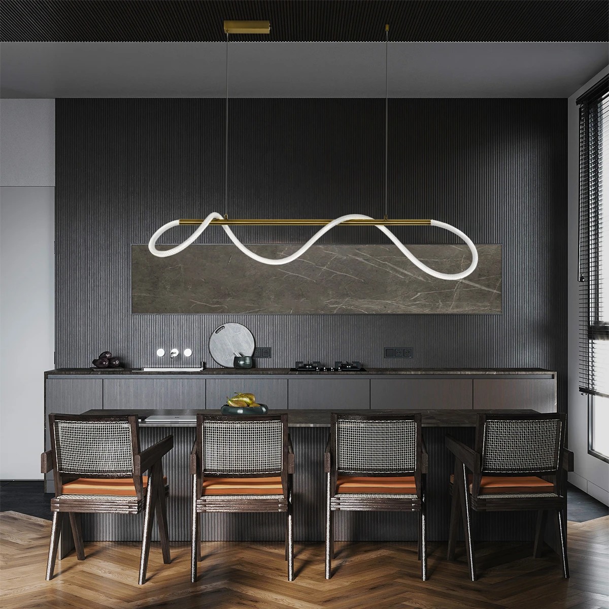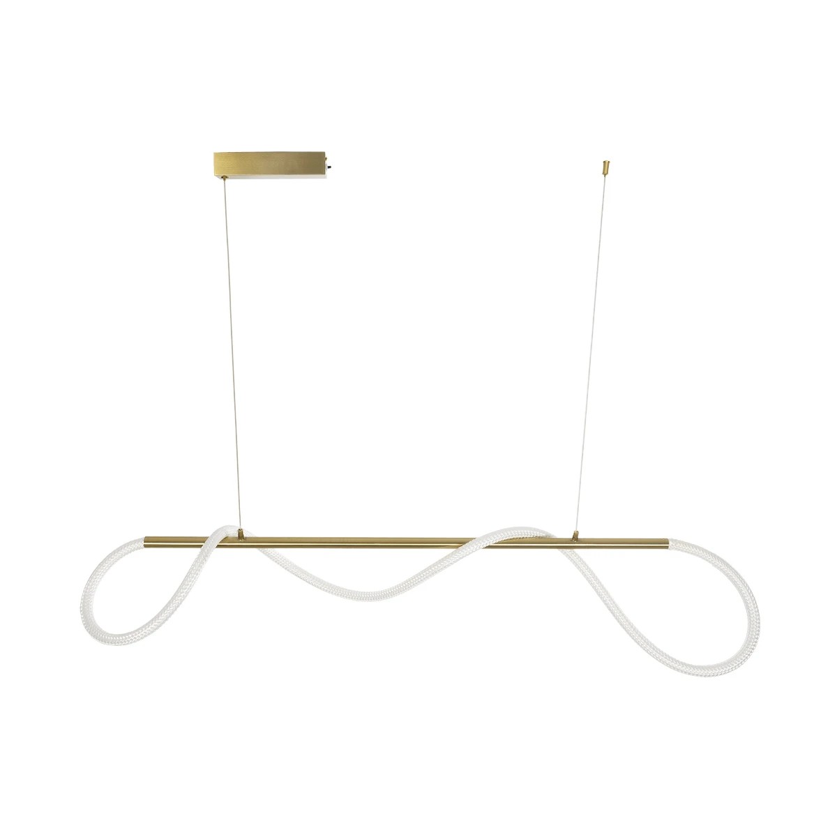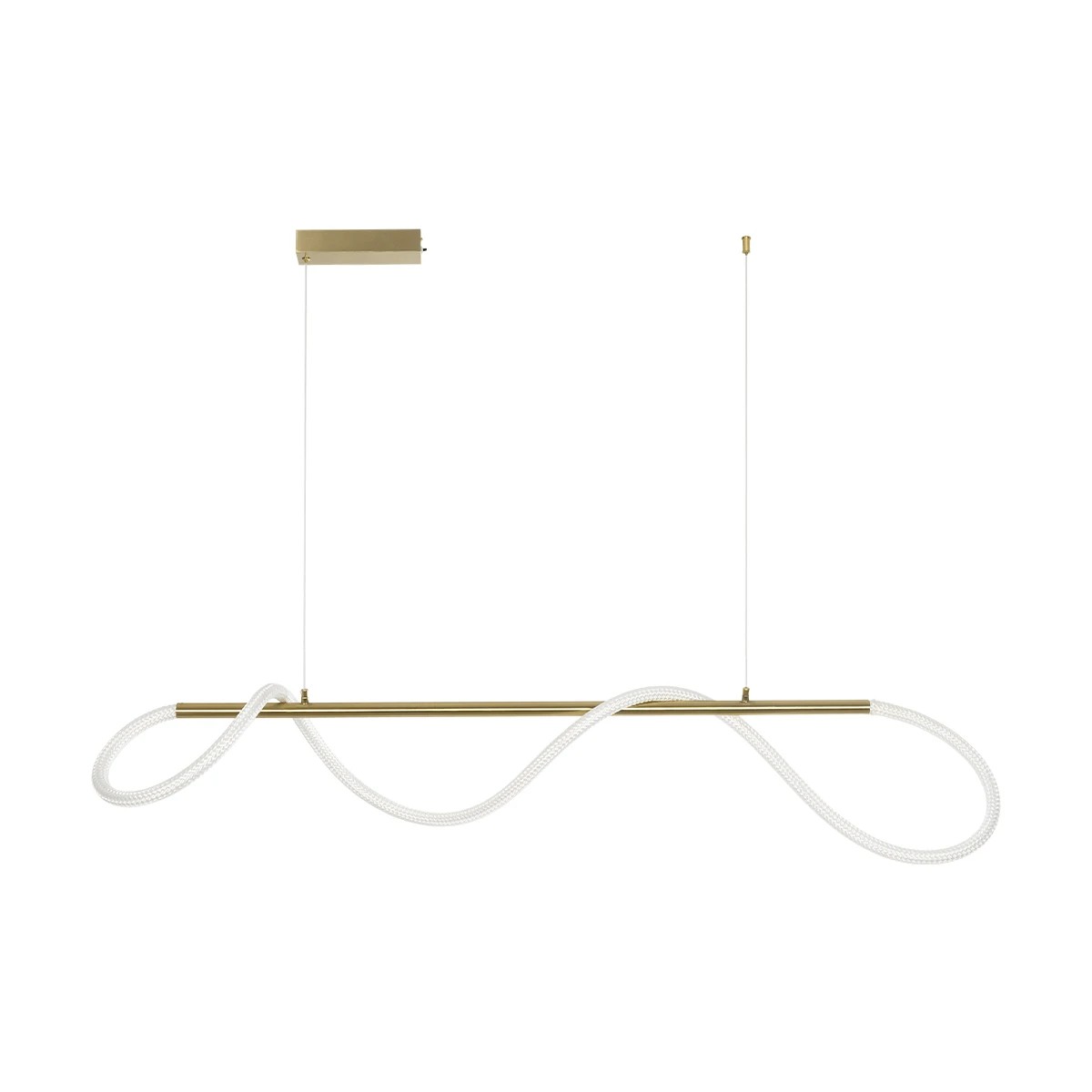 kelvo® GLOW 61662 Μοντέρνο Κρεμαστό Φωτιστικό Οροφής LED 34W 3400lm 360° AC 220-240V IP20 Ρυθμιζόμενο Λευκό CCT με Χειριστήριο από 2700K έως 6000K Dimmable - Lumileds SMD Chip - Χρυσό Πλατίνα & Λευκό Νήμα - Μ140 x Π40 x Υ30cm - 3 Χρόνια Εγγύηση