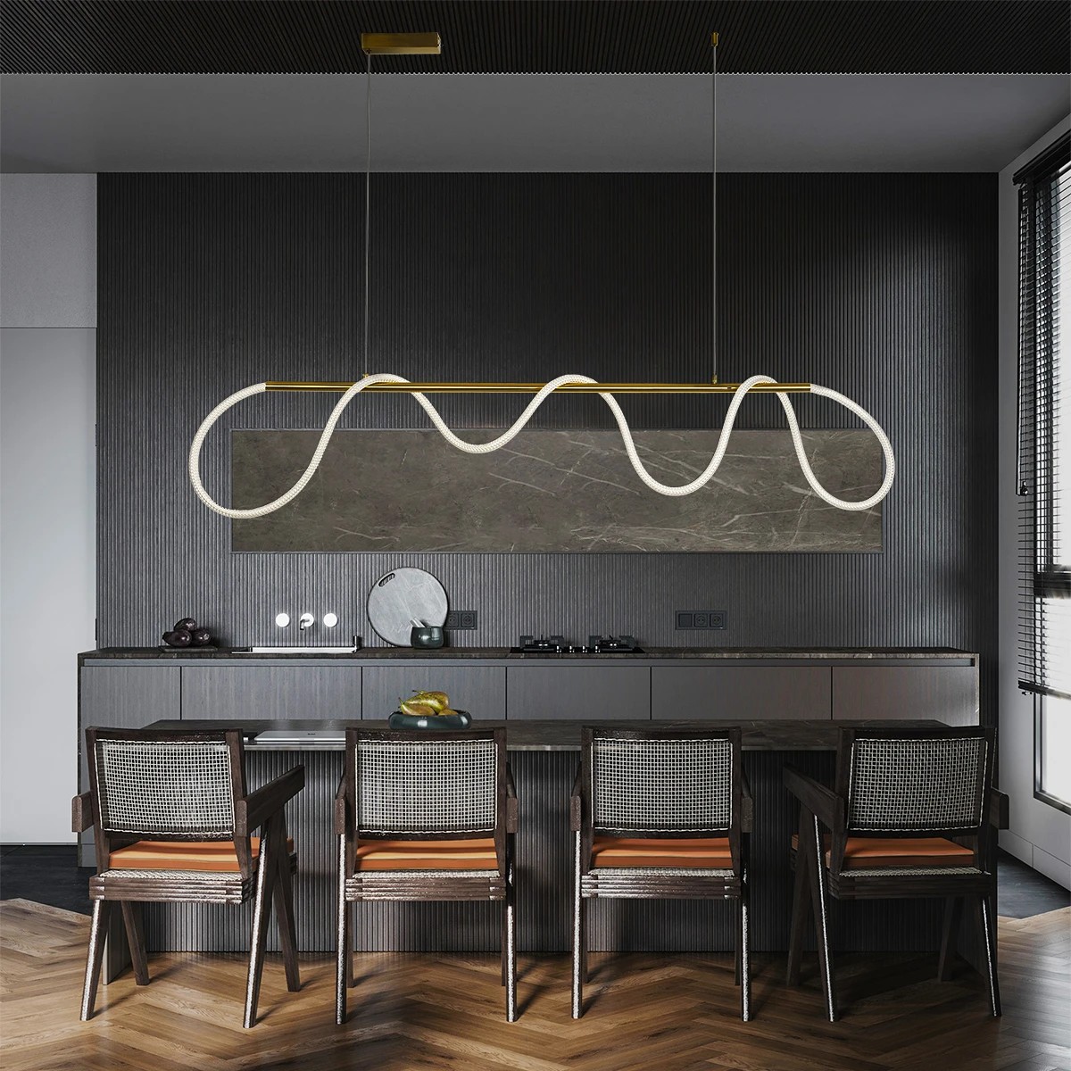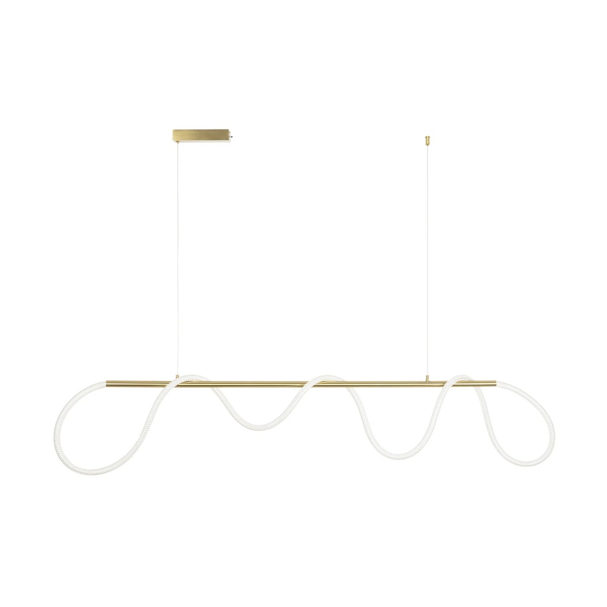 kelvo® GLOW 61663 Μοντέρνο Κρεμαστό Φωτιστικό Οροφής LED 45W 4500lm 360° AC 220-240V IP20 Ρυθμιζόμενο Λευκό CCT με Χειριστήριο από 2700K έως 6000K Dimmable - Lumileds SMD Chip - Χρυσό Πλατίνα & Λευκό Νήμα - Μ180 x Π30 x Υ40cm - 3 Χρόνια Εγγύηση