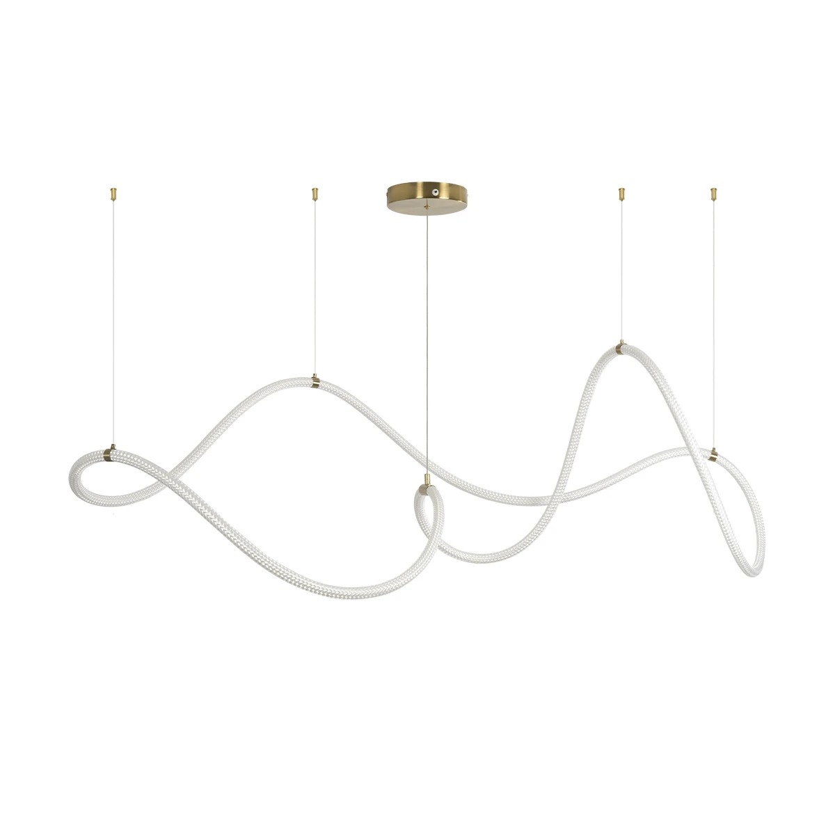 kelvo® GLOW 61668 Μοντέρνο Κρεμαστό Φωτιστικό Οροφής LED 65W 6500lm 360° AC 220-240V IP20 Ρυθμιζόμενο Λευκό CCT με Χειριστήριο από 2700K έως 6000K Dimmable - Lumileds SMD Chip - Χρυσό Πλατίνα & Λευκό Νήμα - Μ150 x Π150 x Υ80cm - 3 Χρόνια Εγγύηση