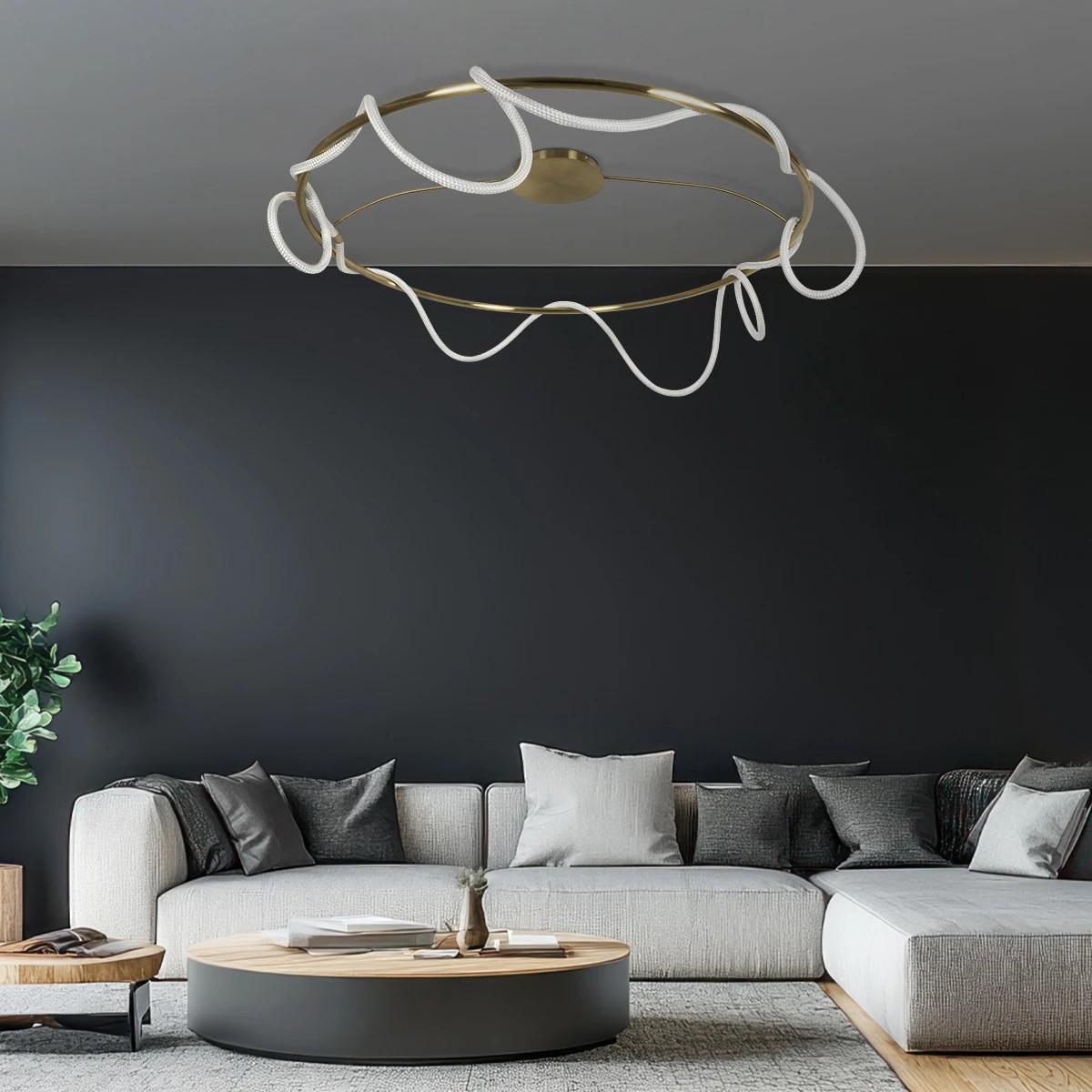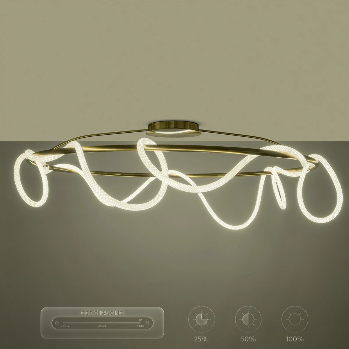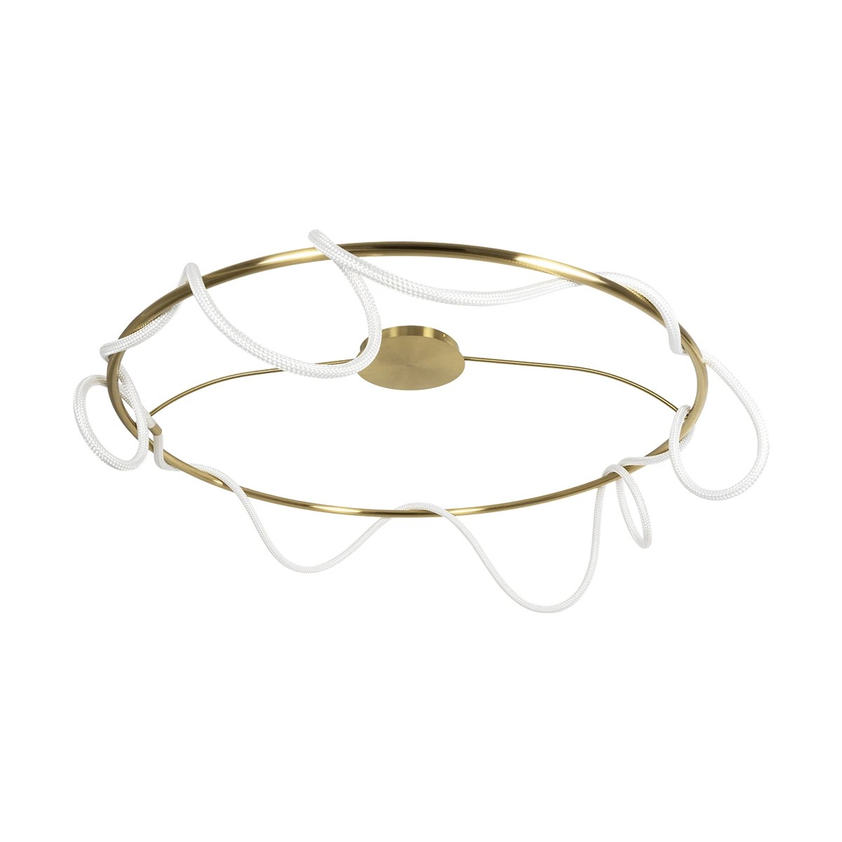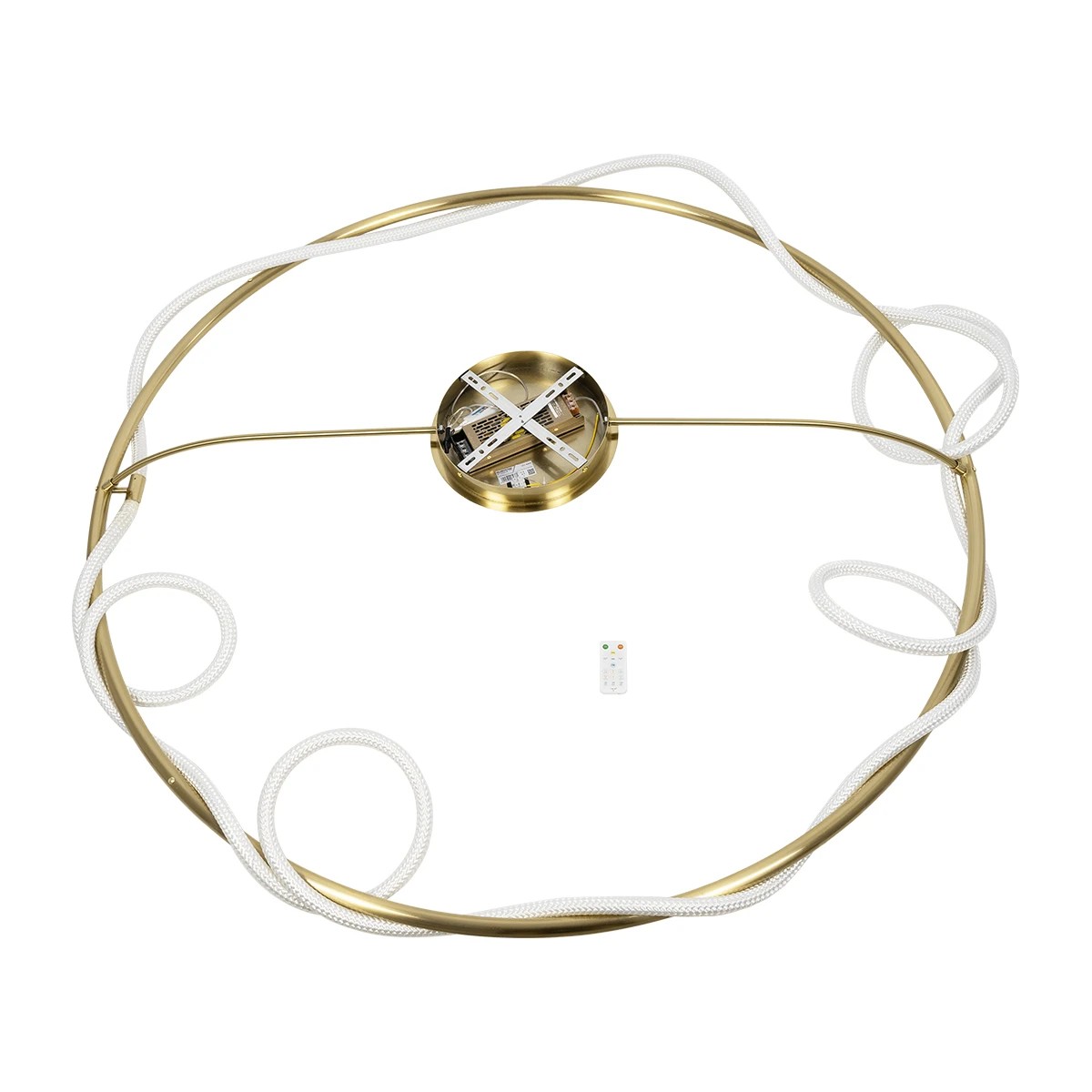 kelvo® GLOW 61675 Μοντέρνο Φωτιστικό Οροφής LED 89W 8900lm 360° AC 220-240V IP20 Ρυθμιζόμενο Λευκό CCT με Χειριστήριο από 2700K έως 6000K Dimmable - Lumileds SMD Chip - Χρυσό Πλατίνα & Λευκό Νήμα - Μ150 x Π150 x Υ30cm - 3 Χρόνια Εγγύηση