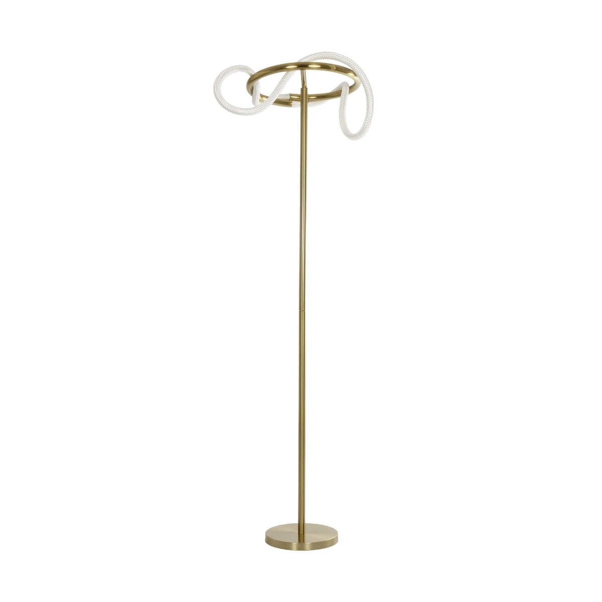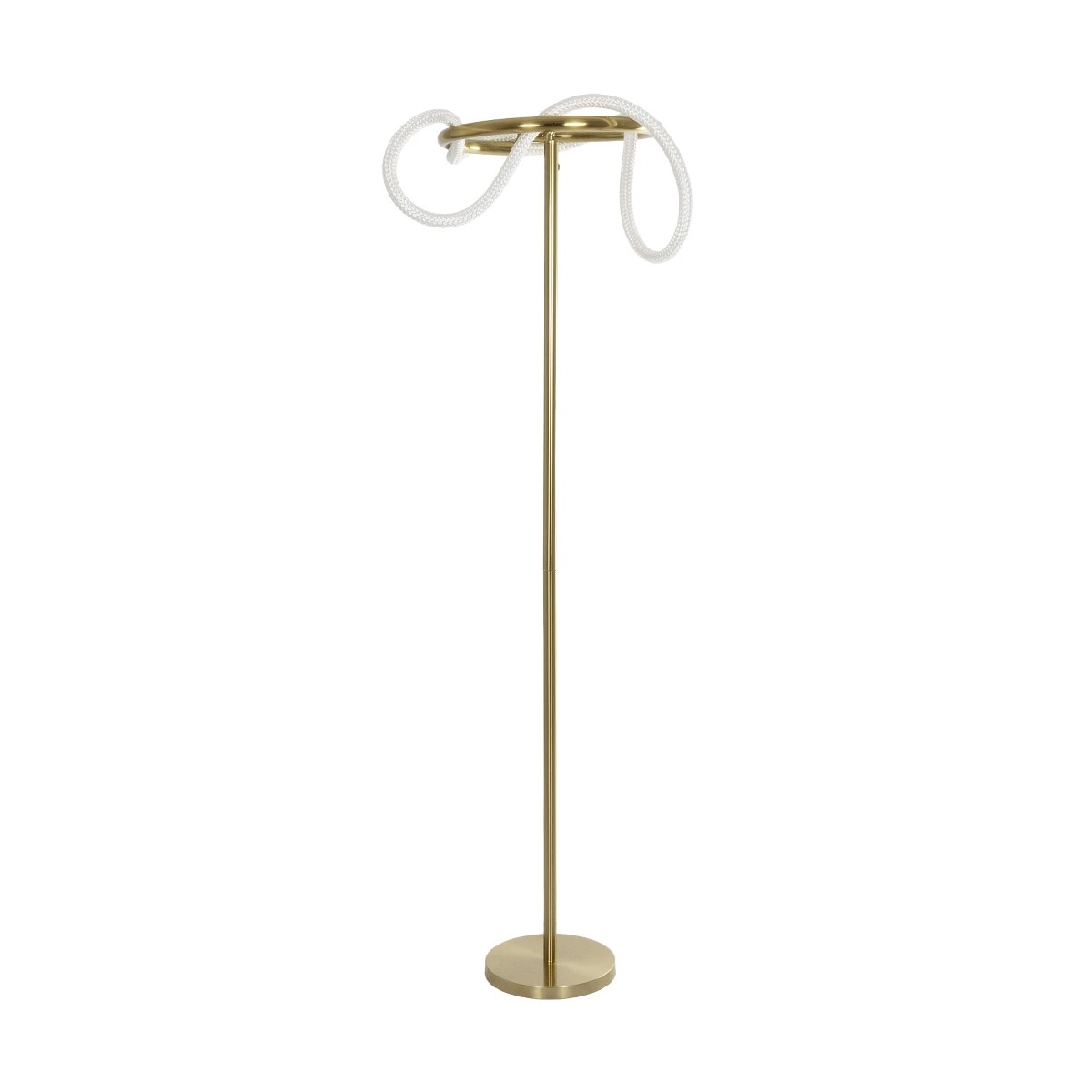 kelvo® GLOW 61687 Μοντέρνο Επιδαπέδιο Φωτιστικό LED 30W 3000lm 360° AC 220-240V IP20 Ρυθμιζόμενο Λευκό CCT με Αφή 2700K/4500K/6000K Dimmable - Lumileds SMD Chip - Χρυσό Πλατίνα & Λευκό Νήμα - Μ45 x Π45 x Υ160cm - 3 Χρόνια Εγγύηση