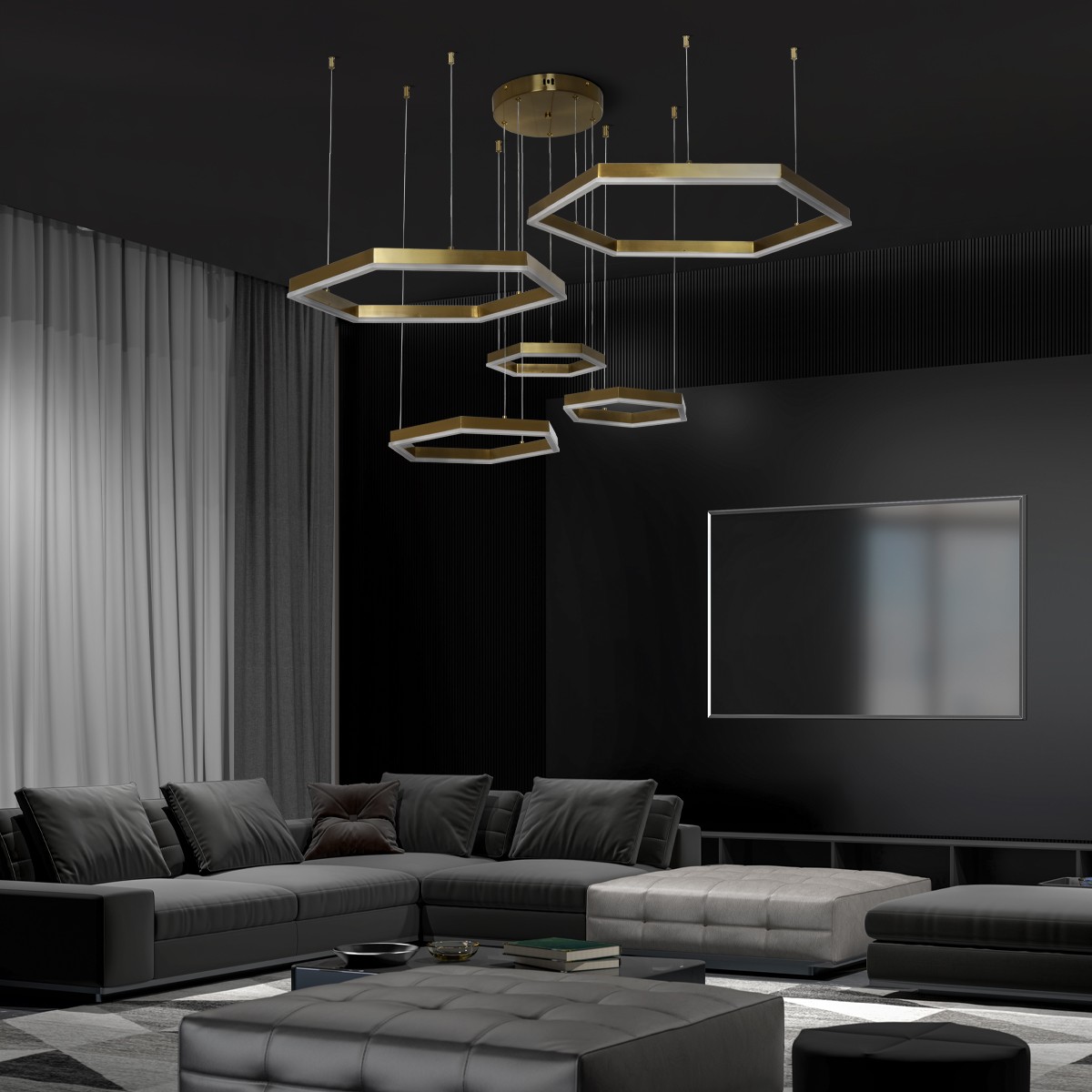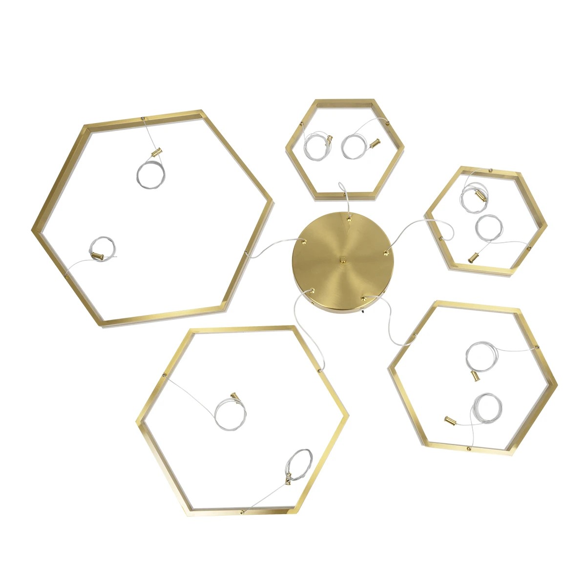 kelvo® LEXAGON 61398 Μοντέρνο Κρεμαστό Φωτιστικό Οροφής LED 120W 12000lm 200° AC 220-240V IP20 Ρυθμιζόμενο Λευκό CCT με Χειριστήριο από 2700K έως 6000K Dimmable - Lumileds SMD Chip - Χρυσό Βούρτσας - Μ110 x Π90 x Υ110cm - 3 Χρόνια Εγγύηση