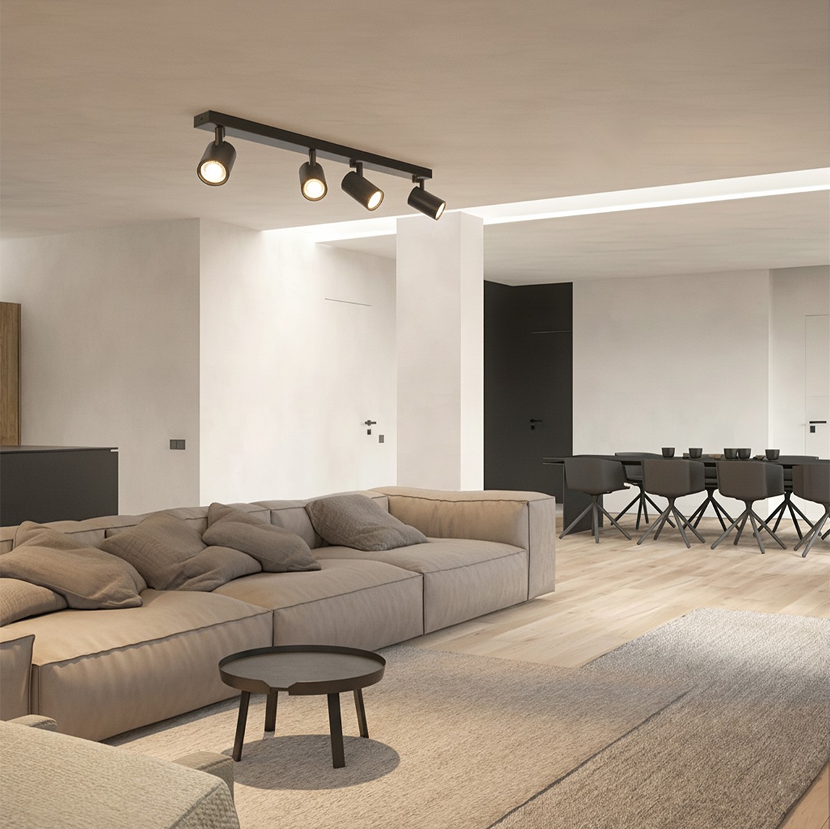 kelvo® SPOTA KLV-101-0140 Μοντέρνο Κινούμενο Φωτιστικό Σποτ Οροφής με Ντουί 4 x GU10 90° AC 220-240V IP20 - Μαύρο Ματ - Μ64 x Π6 x Υ14cm