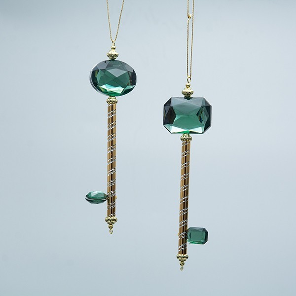 ΚΛΕΙΔΙ ΠΛΑΣΤΙΚΟ, ΧΡΥΣΟ ΜΕ ΣΜΑΡΑΓΔΙ ΠΕΤΡΑΔΙ, 2 ΣΧΕΔΙΑ, 4.3x1.3x15.5cm