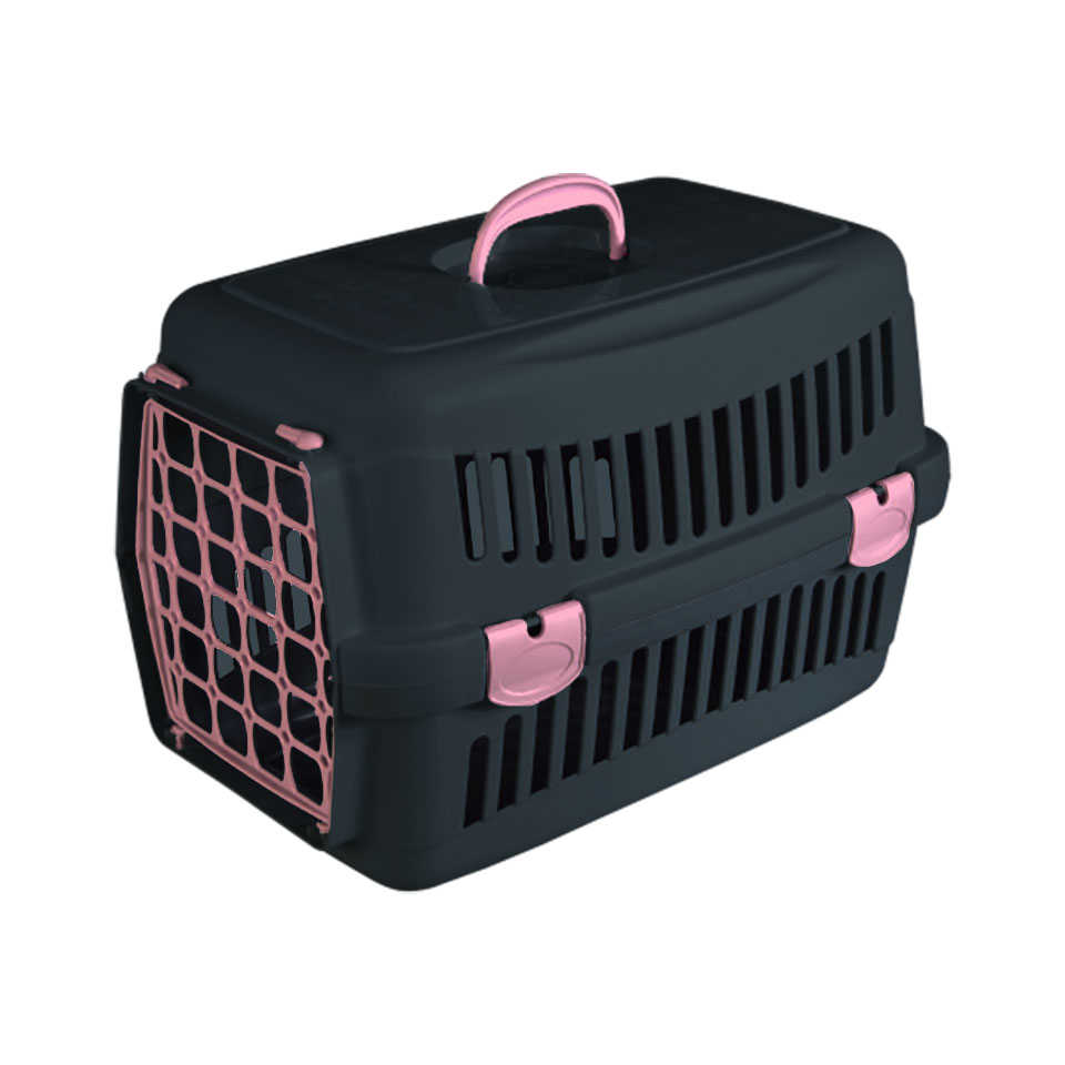 Το Felix Mix Box είναι κουτί μεταφοράς κατοικιδίων σε μαύρο χρώμα με ροζ κουμπώματα, με διαστάσεις 48 × 32,5 × 32,5 cm,