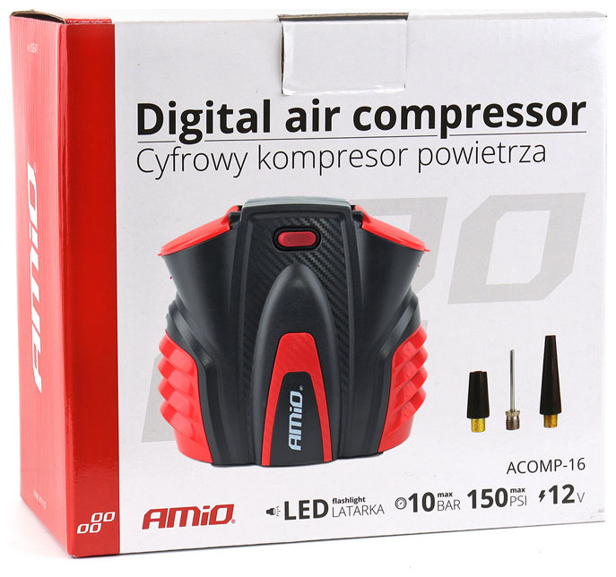 ΚΟΜΠΡΕΣΕΡ ΑΕΡΑ 12V 10bar/150psi ΜΕ 3 ΑΝΤΑΠΤΟΡΕΣ ΚΑΙ ΨΗΦΙΑΚΗ ΕΝΔΕΙΞΗ ACOMP-16 AMIO