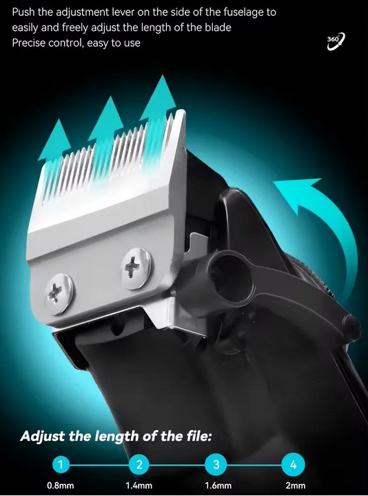 Επαναφορτιζόμενη κουρευτική μηχανή σε εντυπωσιακό σχεδιασμό, με λεπίδα ακριβείας 40mm από ανοξείδωτο ατσάλι, με μεγάλη αυτονομία μπαταρίας, εργονομικό design και αξεσουάρ, κατάλληλη για κάθε είδους περιποίηση σε μαλλιά, γένια και σώμα.