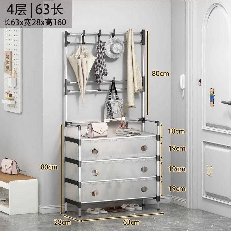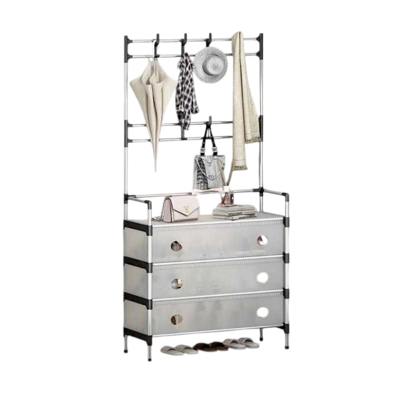 Κρεμάστρα δαπέδου με μεταλλικό σκελετό και συρταρωτές θήκες παπουτσιών και αξεσουάρ με λεπτή, πλαστική, εύκαμπτη πρόσοψη,