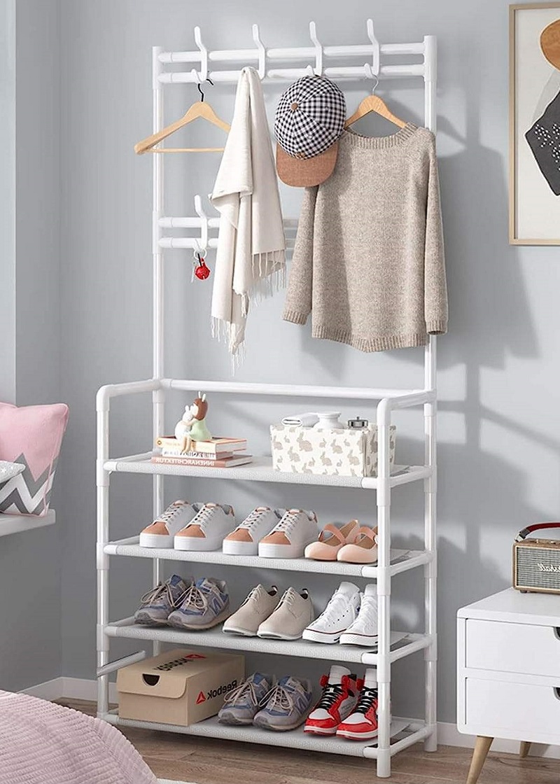 Κρεμάστρα δαπέδου με ράφια παπουτσιών - 6007-1 - 521773 - White