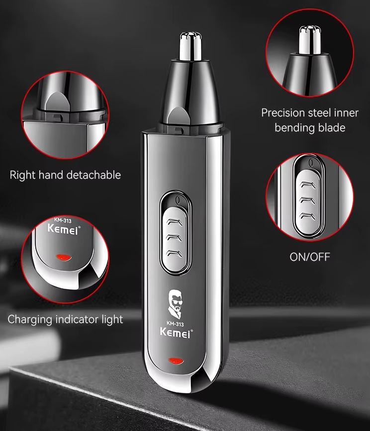 Εξαιρετικά πρακτικό εργαλείο ξυρίσματος και trimmer από την Kemei, με 3 διαφορετικές κεφαλές ειδικές για περιποίηση λεπτομερειών μαλλιών, φρυδιών, μύτης/αυτιών και κάθε δύσκολου σημείου προσώπου και σώματος.
