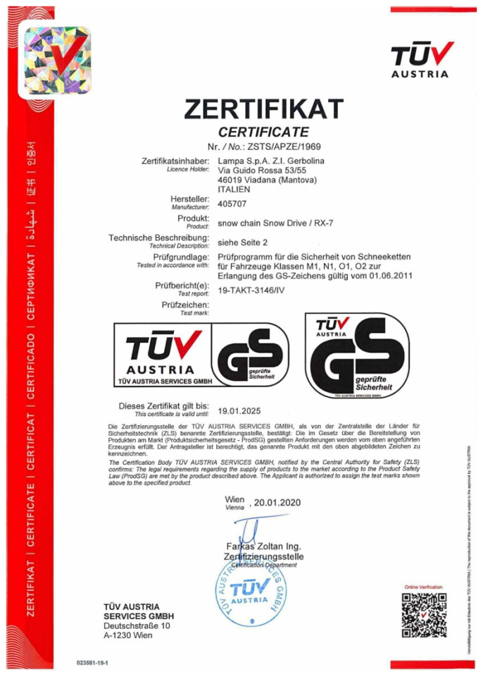 - Περιλαμβάνει: Νάιλον γάντια για χρήση κατά την εφαρμογή των αλυσίδων στους τροχούς.