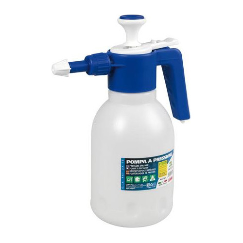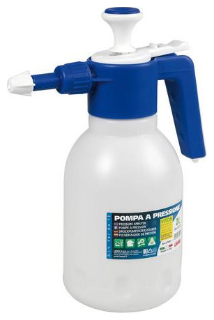 Δοχείο ψεκασμού με πρέσσα, κατασκευασμένο από εξαιρετικής ποιότητας πλαστικό (PP) και λαστιχένια εξαρτήματα (τσιμούχες) από καουτσούκ (VITON/FPM), ιταλική προέλευση από την εταιρεία Lampa . Ιδανικό χημικό ψεκασμού επαγγελματικών απορρυπαντικών (γυαλιστικά κεριά, καθαριστικά τζαμιών κ.α) και για απολλυμαντικά (φυτοφάρμακα, εντομοκτόνα,μικροβιοκτόνα, ζιζανιοκτόνα κ.α). Πρόκειται για ένα δοχείο ψεκασμού με κατοχυρωμένο δίπλωμα ευρεσιτεχνίας χάρη σε έναν μοχλό που ρυθμίζει τη ροή ψεκασμού του υγρού σε κανονική ή συνεχόμενη.Τα λαστιχένια εξαρτήματα (τσιμούχες) από υλικό VITON/FPM,επιτρέπουν στο δοχείο να "φιλοξενεί" ορυκτέλαια, γράμματα σιλικόνης, ζωικά και φυτικά έλαια, αρωματικούς και χλωριωμένους υδρογονάνθρακες. Επιπλέον, έχει υψηλή αντοχή στο όζον και στους ατμοσφαιρικούς παράγοντες. Εξαιρετική λύση για απολύμανση χώρων (για κήπους, ζώα, εσωτερικο σπίτι, γκαράζ, κτιρίων κ.α), για αγροτικές εργασίες (ψέκασμα/πότισμα φυτών), καθώς και για επαγγελματική χρήση (τοποθέτηση αντιηλιακών φίλμ παραθύρων-μεβρανών).