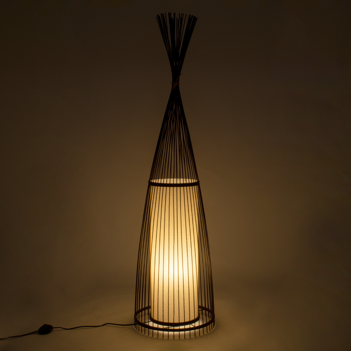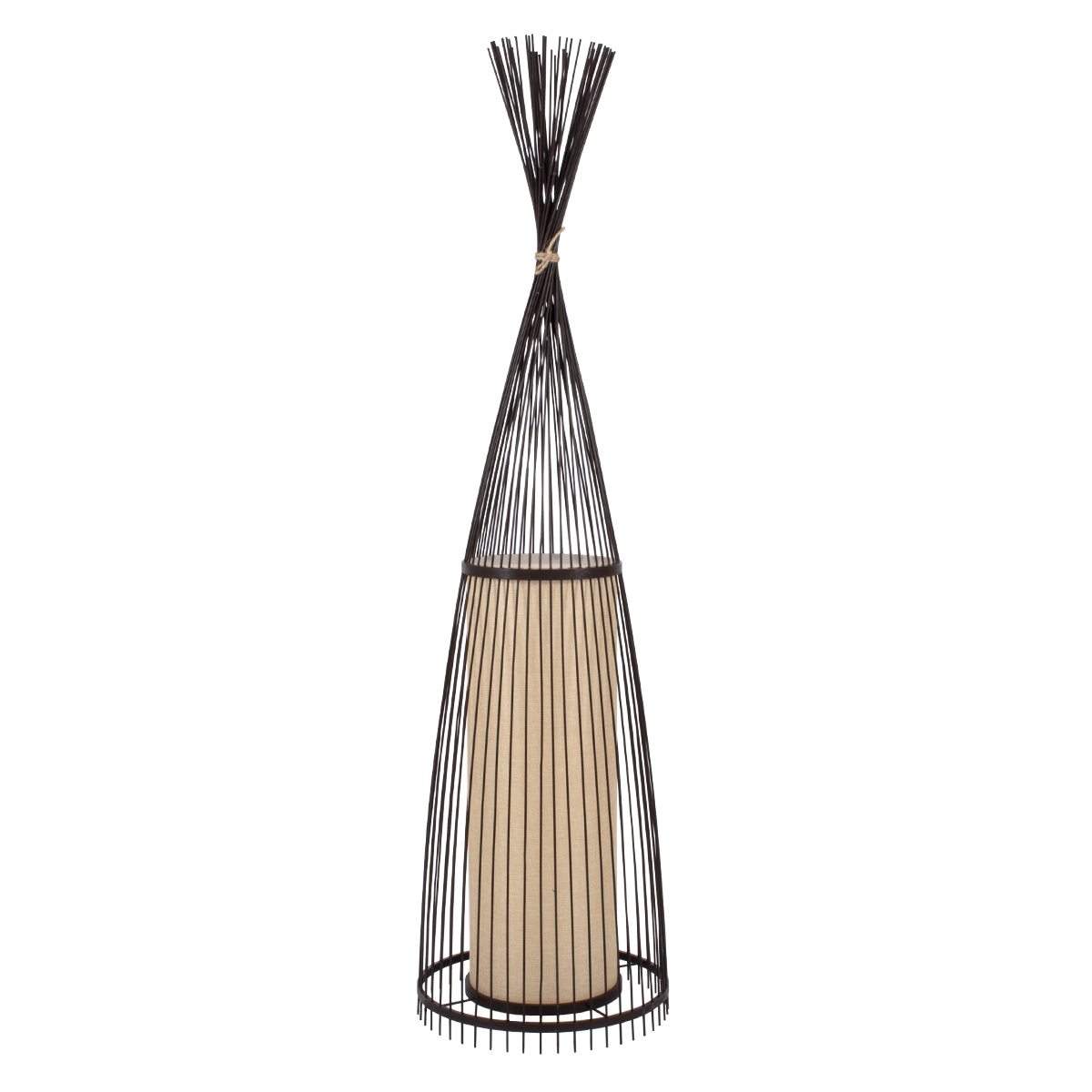 GloboStar® AZORES 01756 Boho Επιδαπέδιο Φωτιστικό Μονόφωτο 1 x E27 IP20 Καφέ & Μπεζ Ξύλο - Μ40 x Π40 x Υ150cm