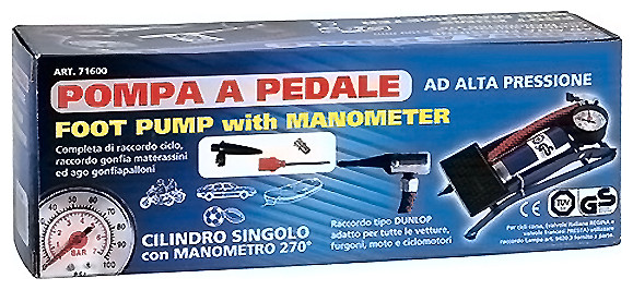 Τρόμπα αέρα ποδηλάτου ποδιού Standard. Μονοκύλινδρη. Με ατσάλινο κύλινδρο. Διατίθεται με αντάπτορες και στόμιο.