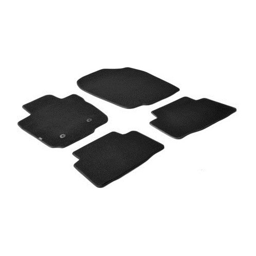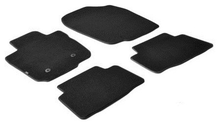 Πατάκια αυτοκινήτου από την εταιρία LAMPA, ιταλικής προέλευσης, κατασκευασμένα από υψηλής ποιότητας μοκέτα - 100% πολυπροπυλένιο - σε μαύρο χρώμα με περιμετρικό φινίρισμα από βελούρ ρέλι (απομίμηση βελούδου), σχεδιασμένα για να ταιριάζουν ακριβώς στις διαστάσεις του δαπέδου του εκάστοτε οχήματος - μαρκέ προϊόν. Είναι αδιάβροχα και διαθέτουν αντιολισθητικό πάτο ενισχυμένο με gel στο πίσω μέρος τους για καλύτερη πρόσφυση στο δάπεδο, καθώς και κουμπιά στερέωσης fix-points για όσα οχήματα είναι εξοπλισμένα με αντίστοιχες εργοστασιακές υποδοχές για να παραμένουν σταθερά στο πάτωμα της καμπίνας κατά την είσοδο/έξοδο των επιβατών.