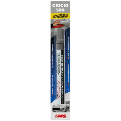Στυλό επισκευής γρατζουνιών SCRATCH FIX TOUCH-UP PENS από τη εταιρία LAMPA, ιταλικής προέλευσης, σε γκρι χρώμα με κωδικό χρώματος 580, κατάλληλο για το "γέμισμα" των γρατζουνιών (φθορών/εκδορών), ώστε κατόπιν εφαρμογής να υπάρχει ένα ενιαίο φινίρισμα στην επιφάνεια του οχήματος. Το χρώμα του στυλό είναι απόλυτα ταιριαστό με το εργοστασιακό χρώμα του αυτοκινήτου και ο αριθμός του κωδικού (580) ταυτίζεται πλήρως με τον αριθμό που αναγράφεται πάνω στο αμάξωμα του εκάστοτε οχήματος (βλ. πίνακα εφαρμογών και επιλογής χρώματος).