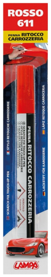 Στυλό επισκευής γρατζουνιών SCRATCH FIX TOUCH-UP PENS από τη εταιρία LAMPA, ιταλικής προέλευσης, σε κόκκινο χρώμα με κωδικό χρώματος 611, κατάλληλο για το "γέμισμα" των γρατζουνιών (φθορών/εκδορών), ώστε κατόπιν εφαρμογής να υπάρχει ένα ενιαίο φινίρισμα στην επιφάνεια του οχήματος. Το χρώμα του στυλό είναι απόλυτα ταιριαστό με το εργοστασιακό χρώμα του αυτοκινήτου και ο αριθμός του κωδικού (611) ταυτίζεται πλήρως με τον αριθμό που αναγράφεται πάνω στο αμάξωμα του εκάστοτε οχήματος (βλ. πίνακα εφαρμογών και επιλογής χρώματος).