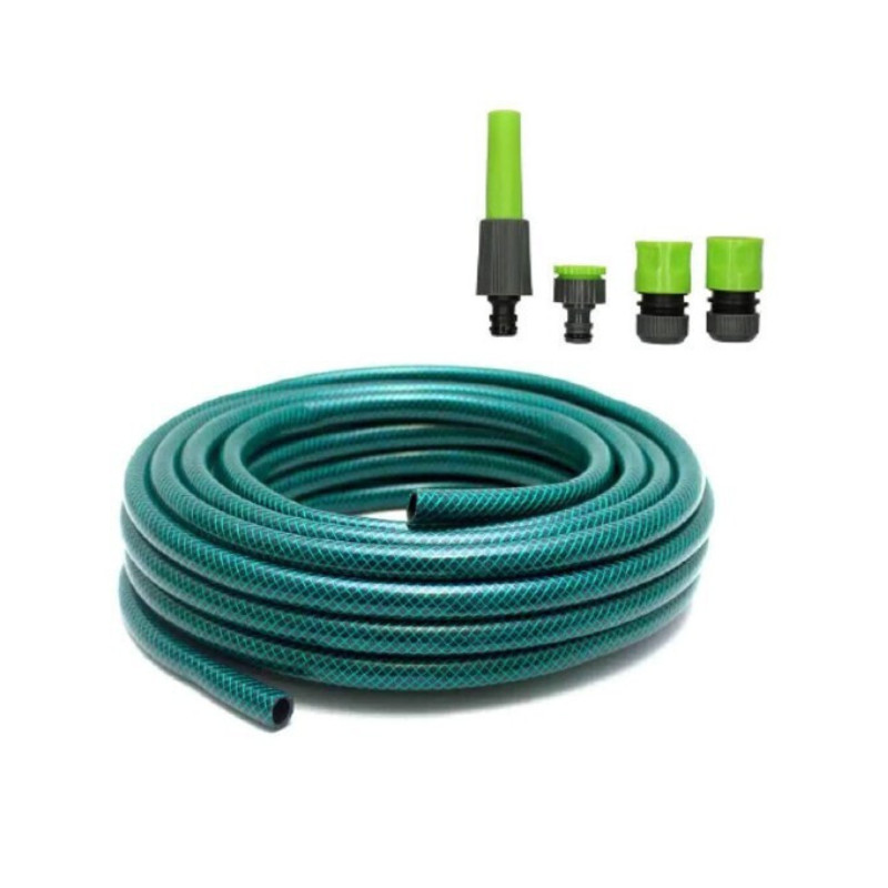 Λάστιχο ποτίσματος, εύκαμπτο και ιδιαίτερα ανθεκτικό, κατάλληλο για επαγγελματική ή οικιακή χρήση. Διαθέτει πλήρες σετ 4 τεμαχίων με εξάρτημα ποτίσματος και ταχυσύνδεσμο βρύσης. Διάμετρος: 1/2''. Μήκος: 30m.