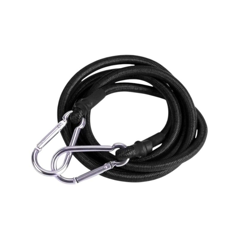 Ελαστικό σχοινί πρόσδεσης αποσκευών, από εξαιρετικά ανθεκτικό υλικό, με 2 ατσάλινους γάντζους τύπου καραμπινέρ. Μήκος: 2.2 m. Πάχος 1 cm.