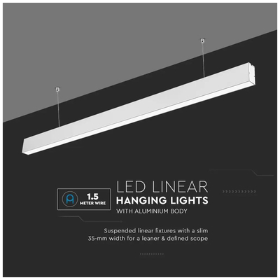 V-TAC Κρεμαστό Γραμμικό Φωτιστικό LED 40W 3300lm 120° IP20 230V Samsung Chip Φυσικό Λευκό Ασημί Σώμα 21375