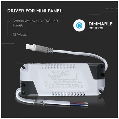 V-TAC Ντιμαριζόμενο τροφοδοτικό 12W για mini πάνελ led 8074