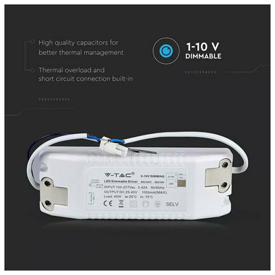 V-TAC Τροφοδοτικό για LED Panel 45W Dimmable 1-10V 6437