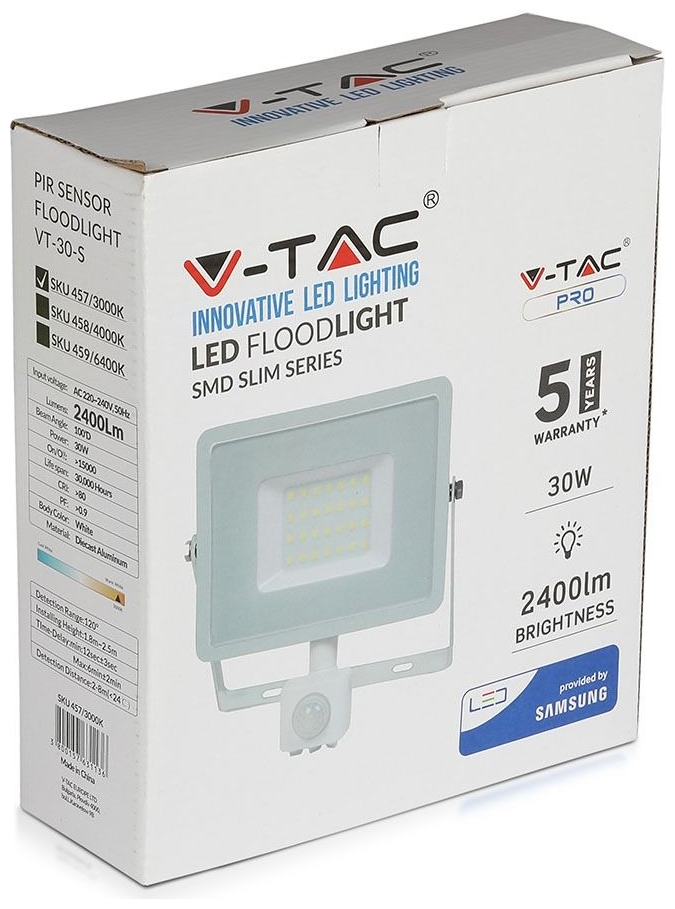 LED Προβολέας 30W slim SMD SAMSUNG CHIP με Ανιχνευτή Κίνησης IP65 Λευκός Θερμό Λευκό 5 Χρόνια Εγγύηση 457