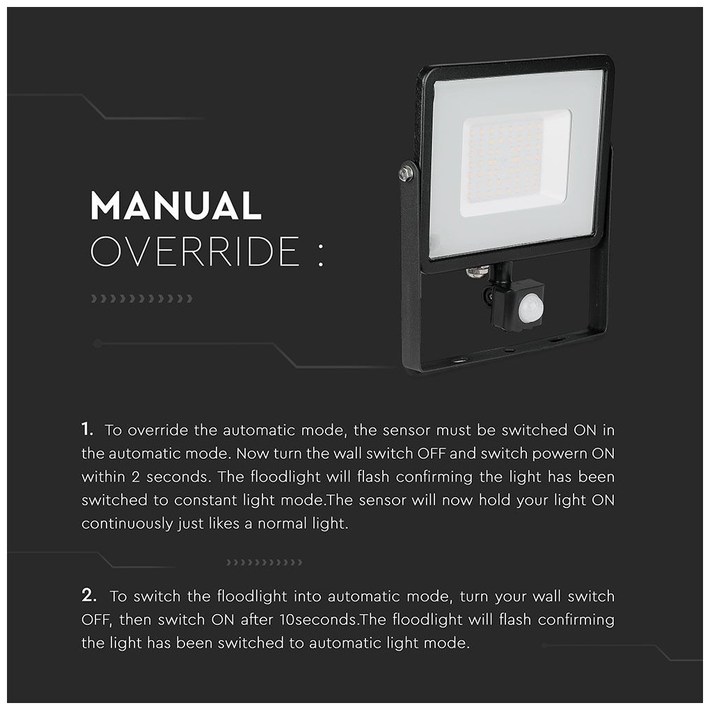 LED Προβολέας 50W slim SMD SAMSUNG CHIP με Ανιχνευτή Κίνησης IP65 Μαύρος Φως Ημέρας 5 Χρόνια Εγγύηση 470