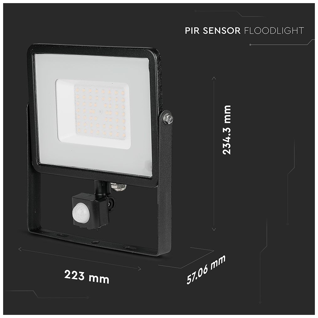 LED Προβολέας 50W slim SMD SAMSUNG CHIP με Ανιχνευτή Κίνησης IP65 Μαύρος Ψυχρό Λευκό 5 Χρόνια Εγγύηση 471