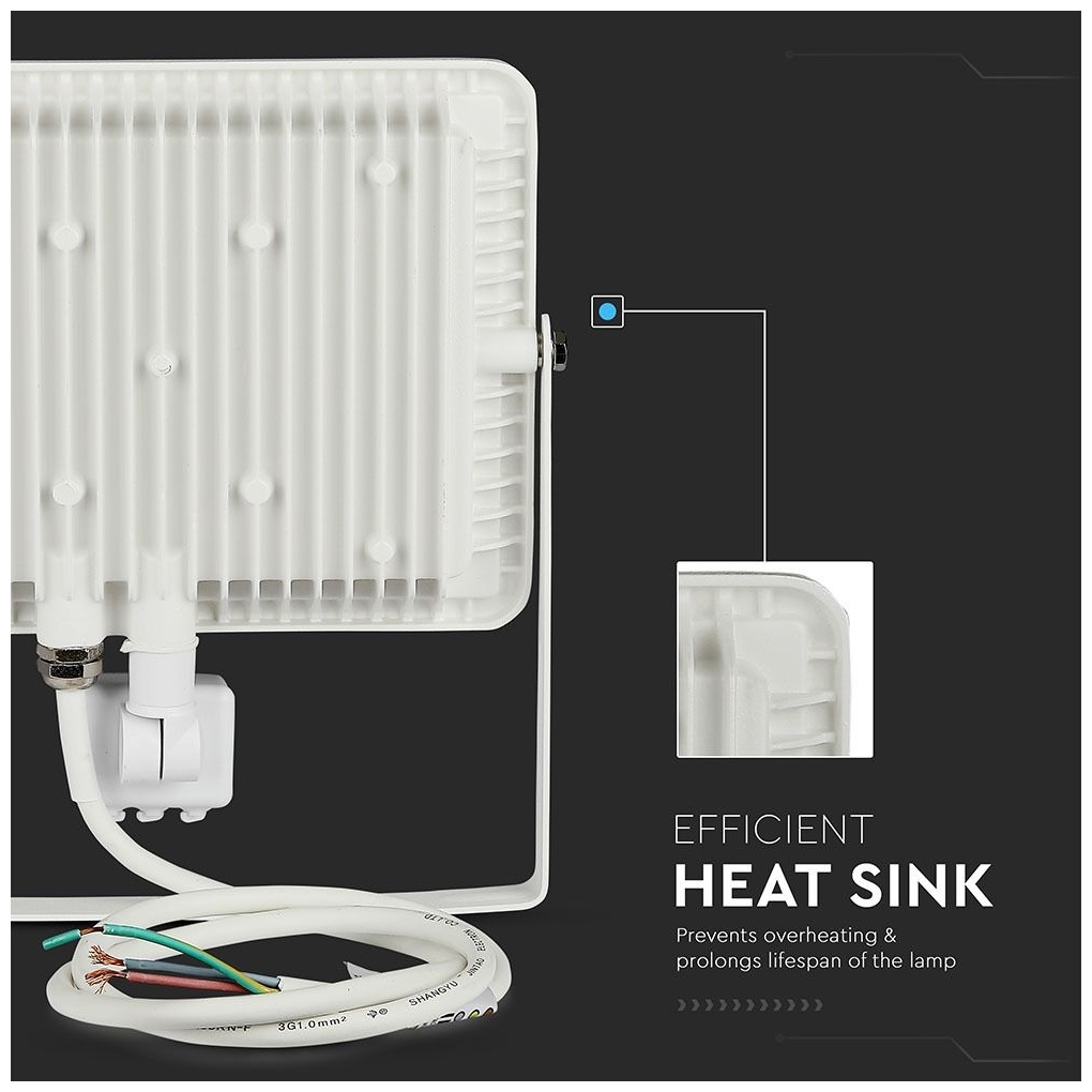 Ακολουθούν περισσότερες πληροφορίες για το προϊόν V-TAC με SKU 468 , κατηγορία Προβολείς - Με αισθητήρα : PRO VT-50-S power LED προβολέας με ισχύ 50W και εξαιρετικά λεπτό σώμα από χυτό αλουμίνιο σε λευκό χρώμα δέσμη φωτός 100°, φωτεινό ροή 4000 lm και αναλογία 80 lm/W Η νέα λεπτή σχεδίαση καθιστά το προϊόν ελαφρύτερο και ευκολότερο στην εγκατάσταση, καθώς και πιο ελκυστική αισθητική από τους κανονικούς προβολείς. Κατάλληλο για χρήση σε εξωτερικούς χώρους χάρη στην προστασία IP65