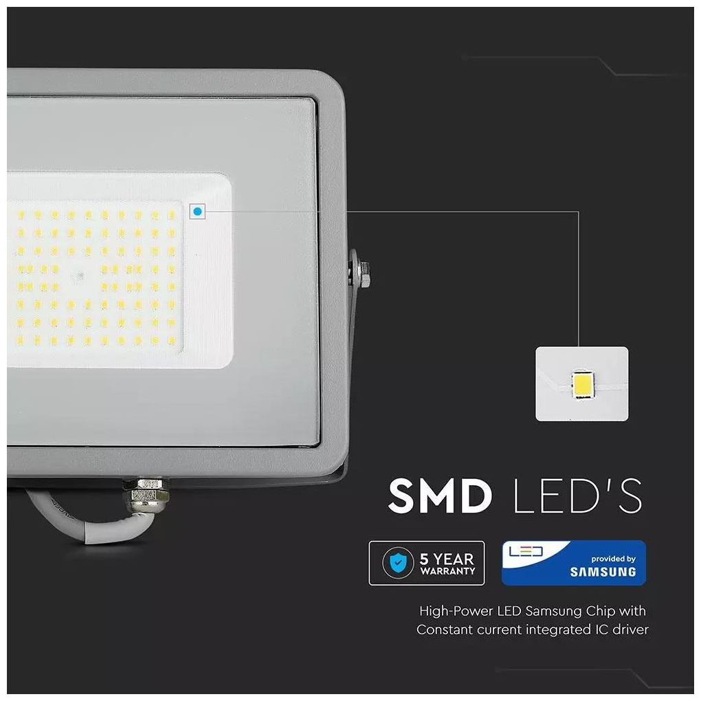 LED Προβολέας V-TAC 50W Γκρί SMD SAMSUNG Chip High Lumen 120LM/W Φως Ημέρας 5 Χρόνια Εγγύηση
