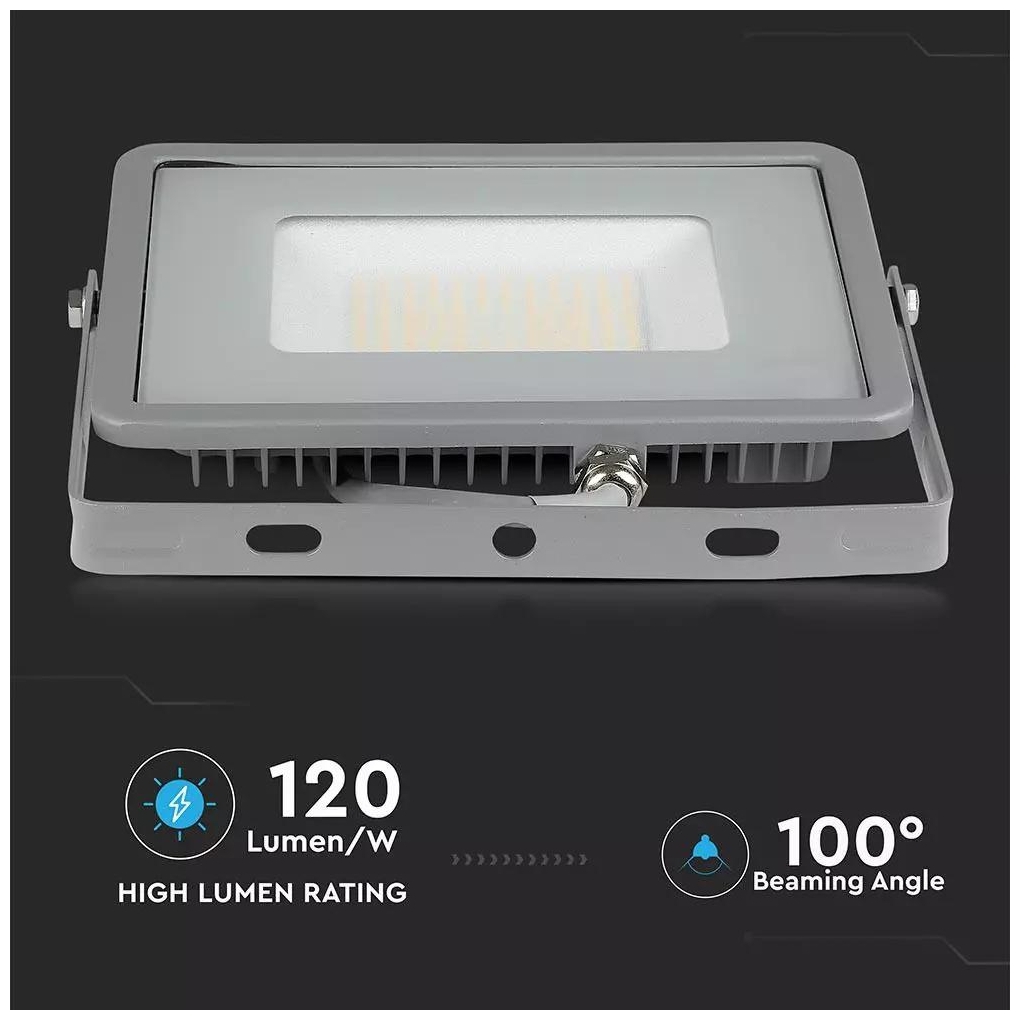 LED Προβολέας V-TAC 50W Γκρί SMD SAMSUNG Chip High Lumen 120LM/W Ψυχρό Λευκό 5 Χρόνια Εγγύηση 765