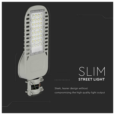 V-TAC Φωτιστικό Δρόμου LED SLIM 50W 120° 6850lm Samsung Chip Φυσικό Λευκό Γκρι Σώμα IP65 21958