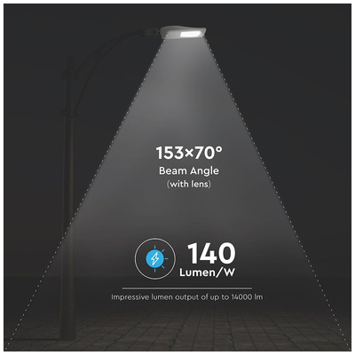 V-TAC Φωτιστικό Δρόμου LED SLIM 100W 120° 13500lm Samsung Chip Φυσικό Λευκό Γκρι Σώμα IP65 21960