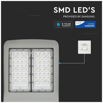 LED V-TAC Φωτιστικό Δρόμου SMD 100W SAMSUNG CHIP Clas II A++ 140LM/W Σώμα Γκρί Dimmable Ψυχρό Λευκό 884