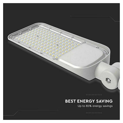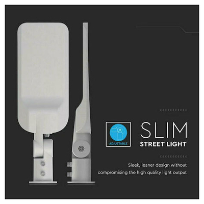 V-TAC Φωτιστικό Δρόμου LED SLIM 50W 100° 6000lm IP65 Samsung Chip Φυσικό Λευκό Γκρι Σώμα 20424
