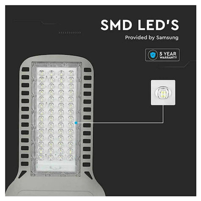 LED V-TAC Φωτιστικό Δρόμου SMD 50W SAMSUNG CHIP A++ Σώμα Γκρί 5 Χρόνια Εγγύηση Φως Ημέρας