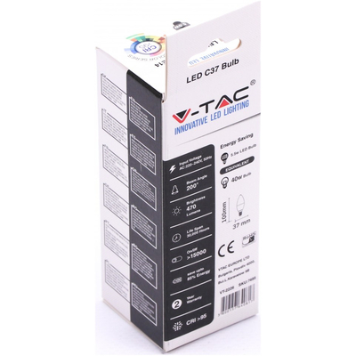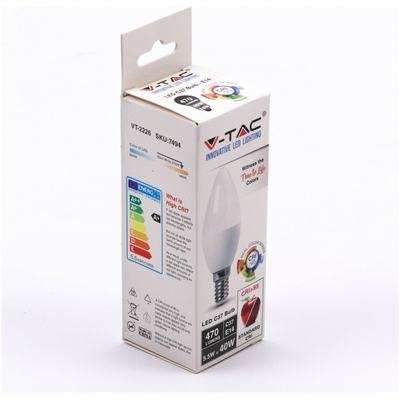 LED Λάμπα V-TAC E14 Κεράκι 7W SAMSUNG CHIP Ψυχρό Λευκό Εγγύηση 5 χρόνια 6400Κ 113