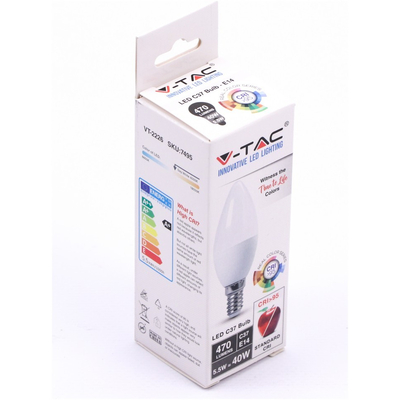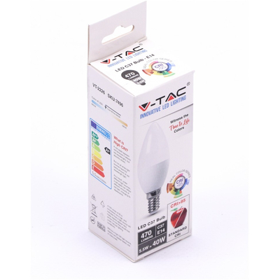 LED V-TAC Λάμπα Ε14 κεράκι 5.5W 470lm CRI 95+ Φως Ημέρας 7495