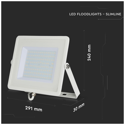 V-TAC Προβολέας LED Samsung chip 100W ψυχρό λευκό 6500K λευκό σώμα 21417