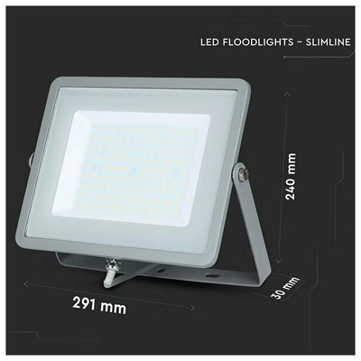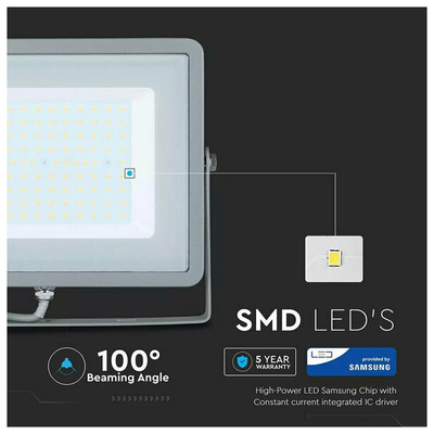 V-TAC Προβολέας LED Samsung chip 100W φυσικό λευκό 4000K γκρι σώμα 21473