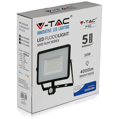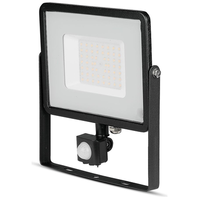 LED Προβολέας 50W slim SMD SAMSUNG CHIP με Ανιχνευτή Κίνησης IP65 Μαύρος Θερμό Λευκό 5 Χρόνια Εγγύηση 469