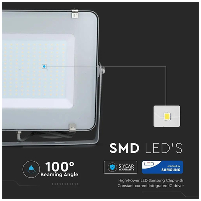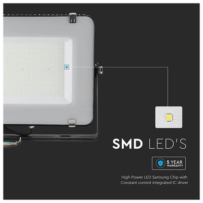 Προβολέας LED SMD 200W 120lm/w 100° 24000lm IP65 Samsung Chip Μαύρο Σώμα 6400K ψυχρό λευκό 779 V-TAC