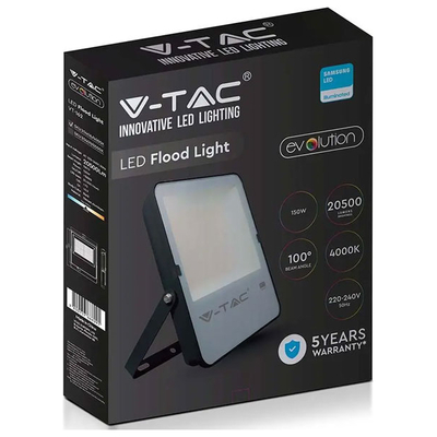 V-TAC Προβολέας LED Samsung chip 150W High Lumen φυσικό λευκό 4000K μαύρο σώμα 115lmW 21772