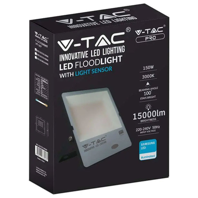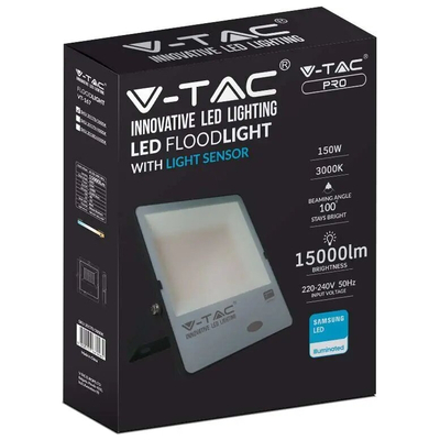 V-TAC Προβολέας LED SMD 150W Samsung Chip με Αισθητήρα Μέρας-Νύχτας 15000lm Μαύρο Σώμα Ψυχρό Λευκό 20180