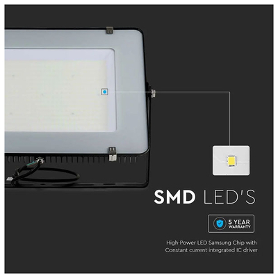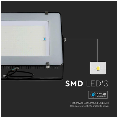 LED Προβολέας V-TAC SAMSUNG CHIP 300W 220V SMD Μαύρος 120 lm/Watt Ψυχρό Λευκό 5 χρόνια εγγύηση 792