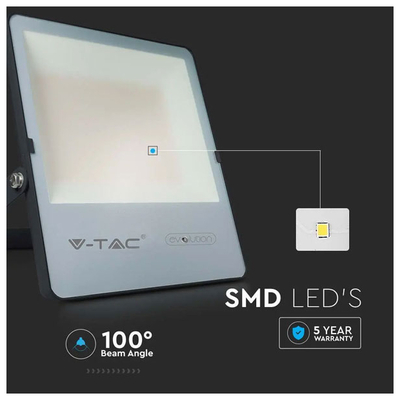 V-TAC Προβολέας LED SMD Slim 300W 100° 34500lm IP65 Samsung Chip G2 High Lumen Γκρι Σώμα Ψυχρό Λευκό 21796