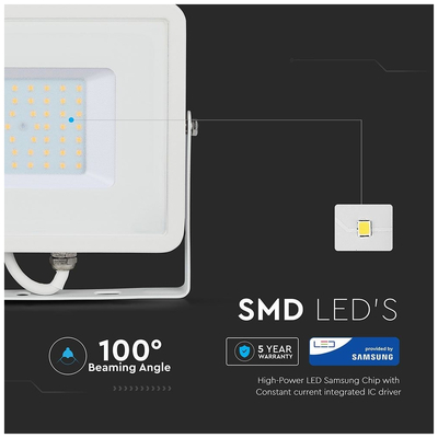 V-TAC Προβολέας LED Samsung chip 50W φυσικό λευκό 4000K λευκό σώμα 21410